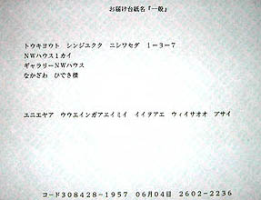 た最初の個展に、下記文言を賜りました(ウンモ星の言語で記述)。
